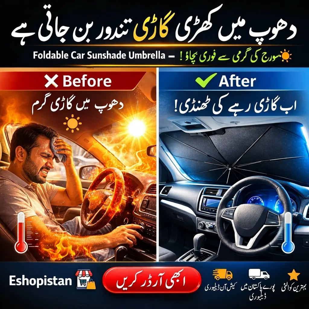 Universal Foldable Car Windshield Sunshade Umbrella – UV & Heat Protection for All Cars ☀️🚗