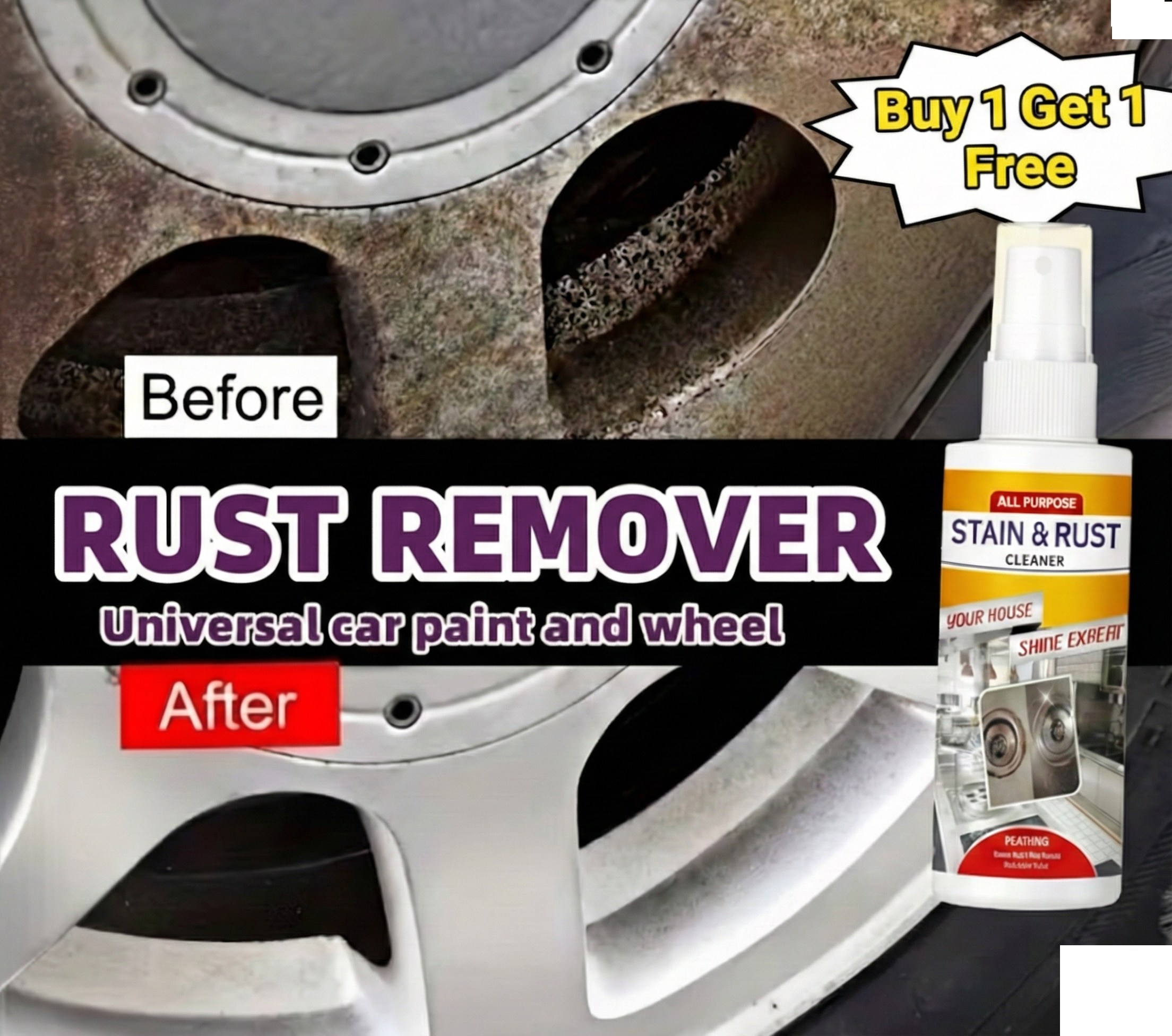 Specially formulated to clean, protect, and restore shine, this powerful spray works on iron, steel, and metal surfaces, leaving them spotless and protected against future rust.